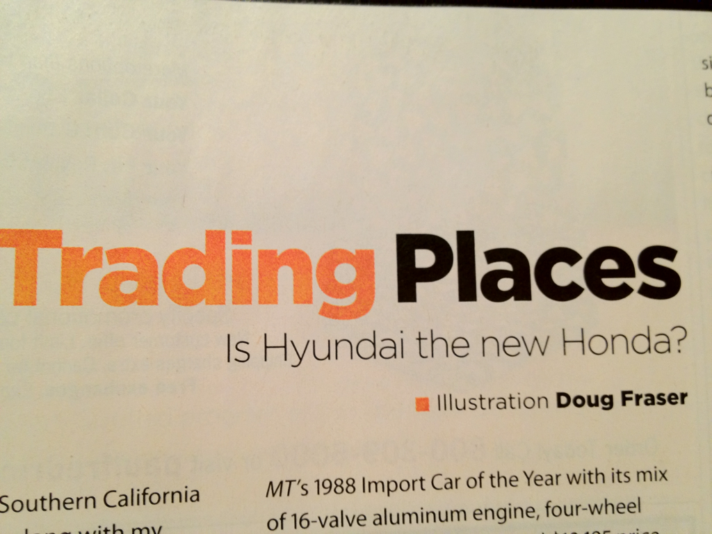 By 2008, Honda had more than made a name for itself. Over the past decade, though, the prices had been steadily increasing, along with the level of luxury and complexity available in their cars. Both the Accord and Civic were bestsellers in their respective classes, and had held their titles for a relatively long time. It was then that I personally theorized they might take the same path American carmakers had taken only a short while before. I don’t want to brag, but this was long before Ron Kiino’s bold title “Is Hyundai the new Honda?” graced the pages of MotorTrend’s October 2011 issue. And it was really a far-fetched notion at the time. Simply a suspicion.